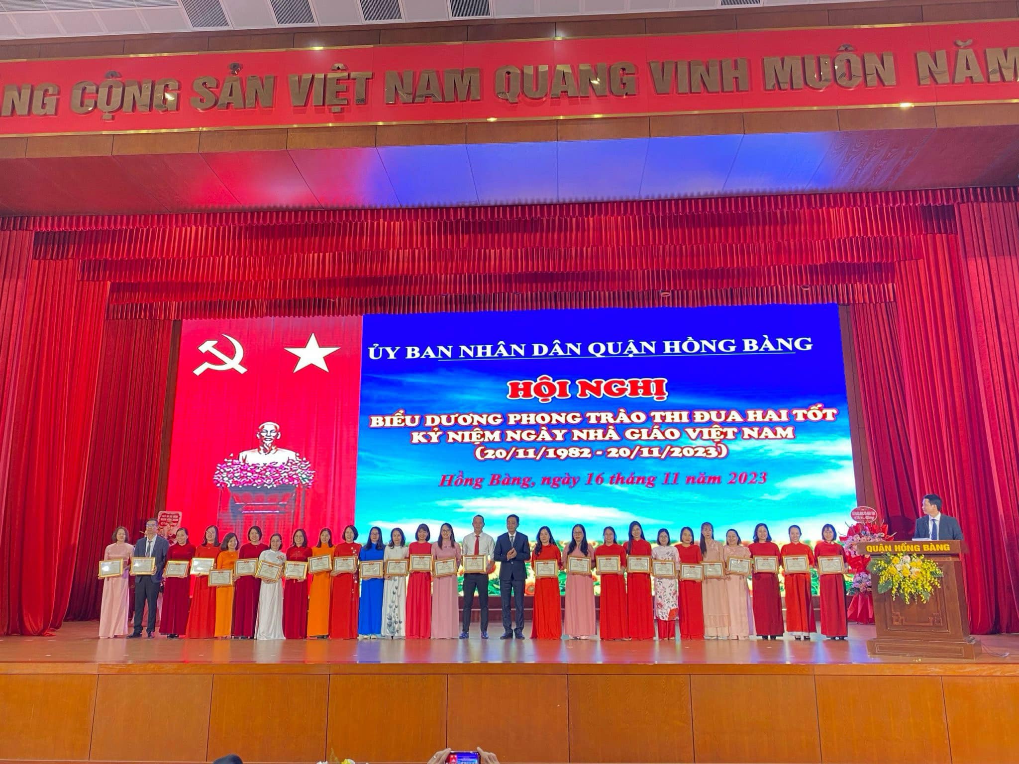 Ngày 16/11/2023 Ủy ban nhân dân Quận Hồng Bàng tổ chức Hội nghị biểu dương phong trào thi đua “Hai tốt” chào mừng ngày Nhà giáo VN 20/11, Ban giám hiệu, Chủ tịch Công đoàn nhà trường đã tới dự.