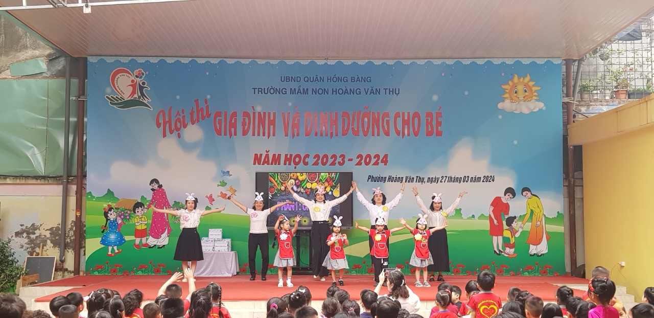 Trường Mầm non Hoàng Văn Thụ Tổ chức Hội thi “Gia đình và dinh dưỡng cho bé” năm học 2023-2024 nhằm nhằm tuyên truyền với các bậc phụ huynh về kiến thức dinh dưỡng và chăm sóc sức khoẻ cho các bé.