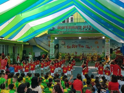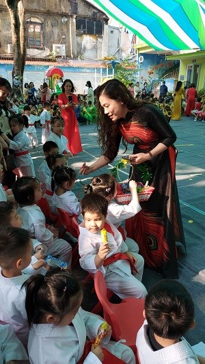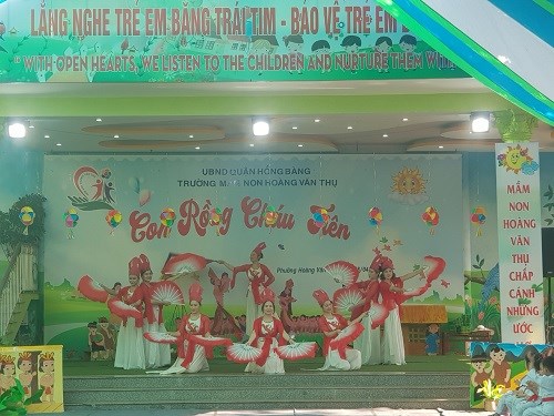 Tới dự có đồng chí Nguyễn Thị Lan Anh - Chuyên viên Phòng Giáo dục & Đào tạo quận Hồng Bàng cùng các đồng chí trong cấp ủy chi bộ, Ban giám hiệu nhà trường, các cô giáo, ông bà cha mẹ của các bé.