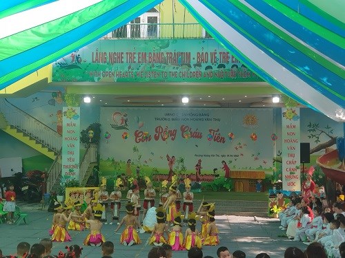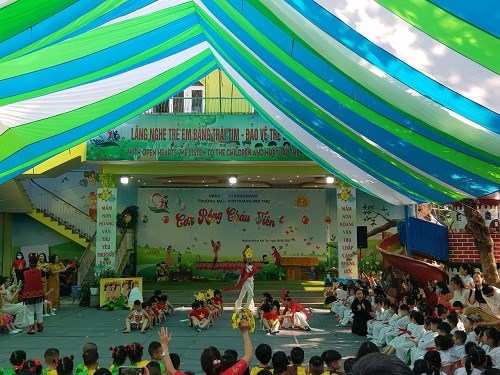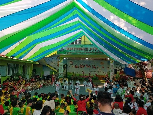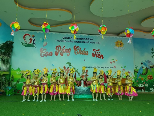 Tại lễ hội các bé được biết thêm về ngày giỗ Tổ Hùng Vương của nước ta, các bé được tham gia các tiết mục văn nghệ, võ tay không, các trò chơi dân gian: kéo co, đi cà kheo, chèo thuyền...