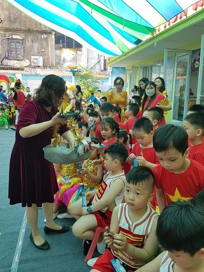 Cuối chương trình các bé còn được nhận quà từ các cô các bác trong Ban giám hiệu.
