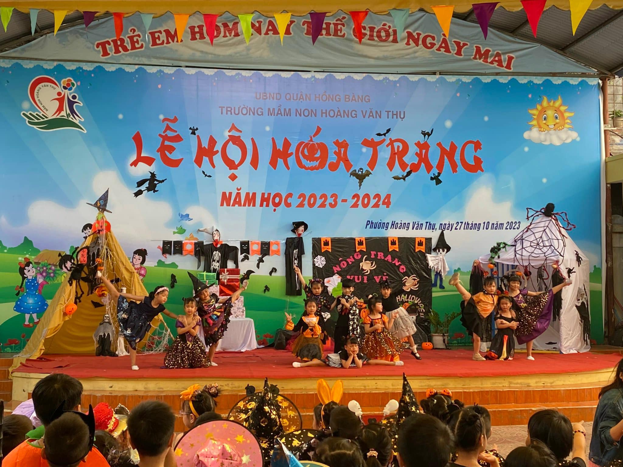 Với chủ đề năm học “Xây dựng trường mầm non hạnh phúc tôn trọng quyền trẻ em”. Ngày 27/10, nhà trường kết hợp với trung tâm Anh ngữ Enspire tổ chức chương trình LỄ HỘI HÓA TRANG . Sân chơi là niềm mong đợi của , là sự ủng hộ và kết hợp nhiệt tình của các bậc phụ huynh với các tiết mục văn nghệ, màn trình diễn thời trang và phần trò chơi giao lưu ấn tượng. Đó thật là những kỷ niệm đáng nhớ, đáng yêu của các bé cùng với cô giáo khi ở trường mầm non.