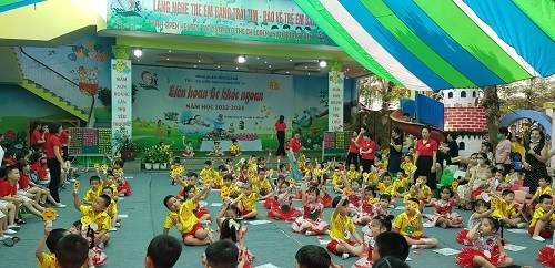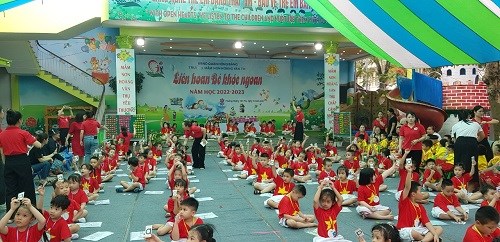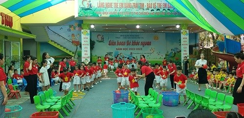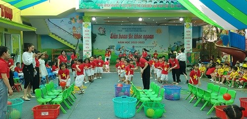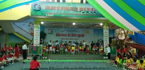 Liên hoan "Bé khỏe ngoan" cũng là sân chơi để cho các bé được thể hiện những kiến thức, kỹ năng mà cô giáo đã dạy các bé trong năm học vừa qua. Với diện tích sân trường hạn chế và mong muốn 100% các bé được tham gia Liên hoan, nhà trường đã tổ chức vào hai ngày, ngày 18/05/2023 là các bé nhà trẻ và 3 tuổi, ngày 19/05/2023 là các bé 4 và 5 tuổi.