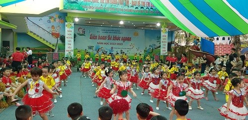 Các bé thể hiện màn đồng diễn thể dục, thực hiện các bài tập vừa sức, khéo léo, tự tin, đặc biệt các bé 4, 5 tuổi có những bài tập để trải nghiệm về cách bảo vệ bản thân, an toàn giao thông… Liên hoan đã đọng lại niềm hứng khởi, vui thích và đặc biệt có sự ủng hộ nhiệt tình của các bậc phụ huynh!