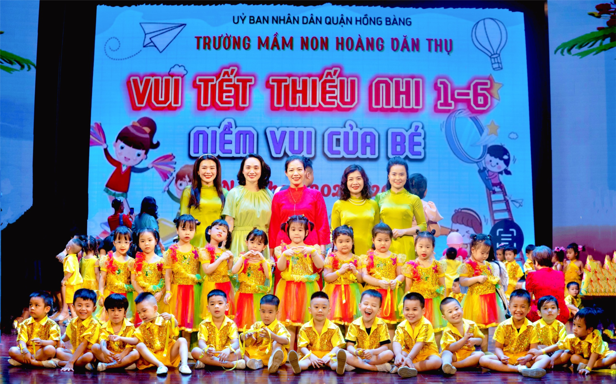 và các cô giáo của ngày hôm qua. Ngày hôm nay, các bé Nhà trẻ, 3,4 tuổi cũng được là những diễn viên, ca sĩ, vũ công và 100% các bé yêu của trường mầm non Hoàng Văn Thụ tham gia biểu diễn trên sân khấu lớn của Nhà hát Thành phố