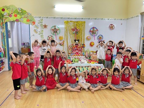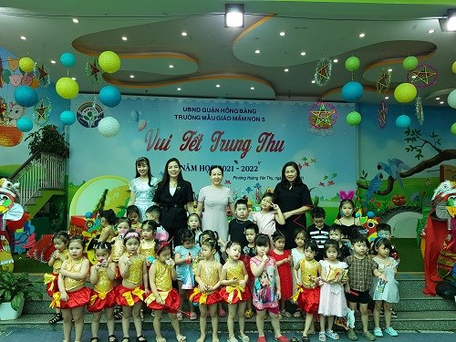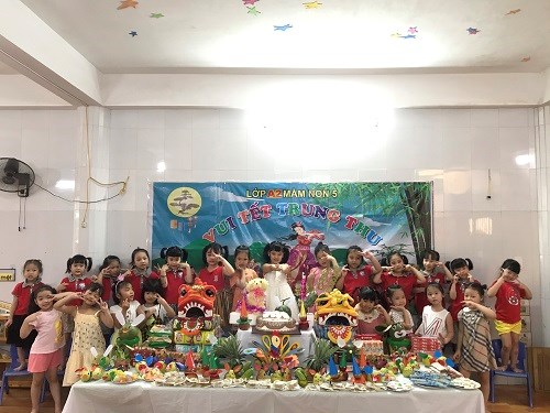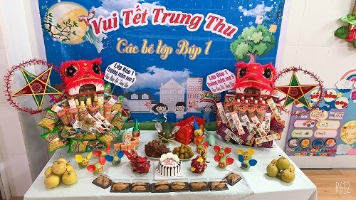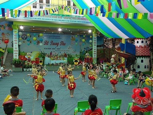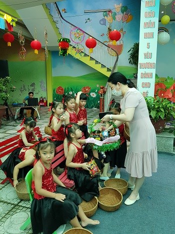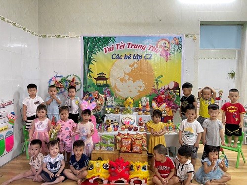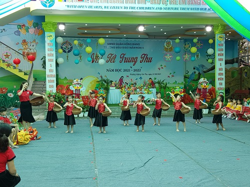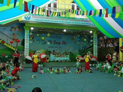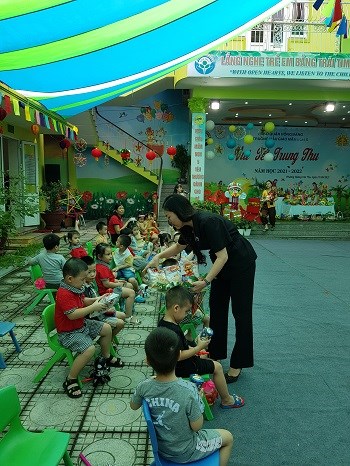 Trước đó vào buổi sáng các bé được xem các tiết mục văn nghệ với chủ đề "Vui trung thu" theo từng khối tuổi và được các bác trong Ban giám hiệu tặng quà Trung thu.