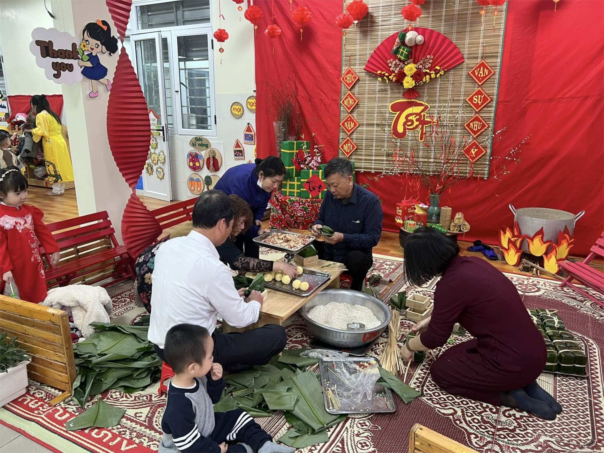 Trường Mầm non Hoàng Văn Thụ tổ chức Hội chợ Xuân với chủ đề "Xuân yêu thương - Tết an lành" cho các bé với các
