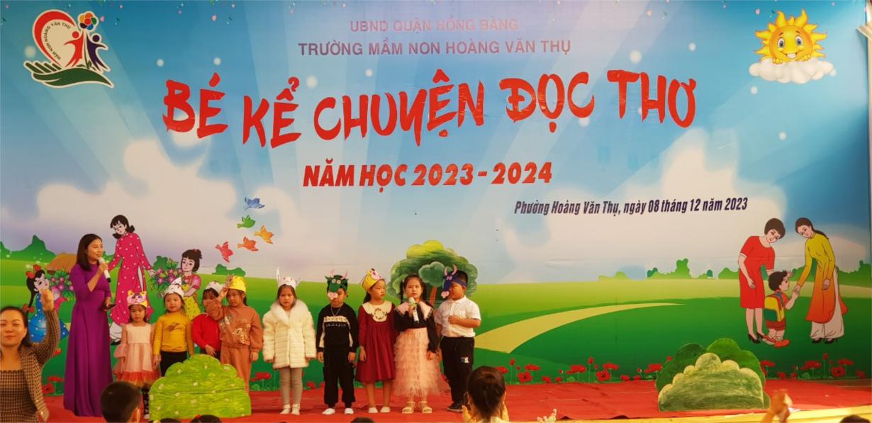 Trường Mầm non Hoàng Văn Thụ tổ chức hội thi “Bé kể chuyện, đọc thơ” cho các bé độ tuổi mẫu giáo, đây là năm học thứ 3 liên tục nhà trường tổ chức hội thi, đó là một trong những sân chơi thực sự bổ ích với các bé, nhằm tạo điều kiện cho trẻ phát triển và hình thành những yếu tố đầu tiên của nhân cách, đặc biệt với trẻ mẫu giáo. Nâng cao sự hiểu biết và khả năng sử dụng ngôn ngữ, khả năng giao tiếp hiệu quả cũng như những kỹ năng tiền học đọc, tiền học viết ban đầu của trẻ.