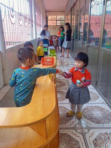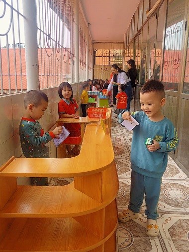 Ngày hôm nay, các bé được làm người bán hàng, nhân viên bán vé, nhân viên soát vé vào rạp chiếu phim, được xếp hàng lần lượt đi mua vé, mua hàng, biết thứ tự, nhường nhịn, biết giữ trật tự khi xem phim, biết bỏ rác đúng quy định và biết ngồi đúng số ghế như số vé….