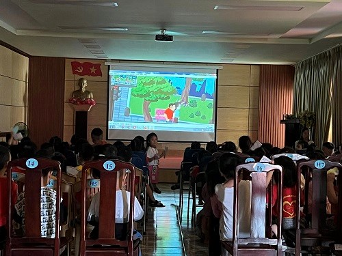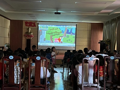 Vui hơn nữa, bé được xem những bộ phim hoạt hình mà bé thích với những tập phim hoạt hình Tôi yêu Việt Nam. Khi trở về lớp, bé được trao đổi trò chuyện lại với cô giáo và các bạn về tập phim vừa xem: cách tham gia giao thông, cách sang đường thế nào cho đúng, cách nhận biết đèn giao thông…