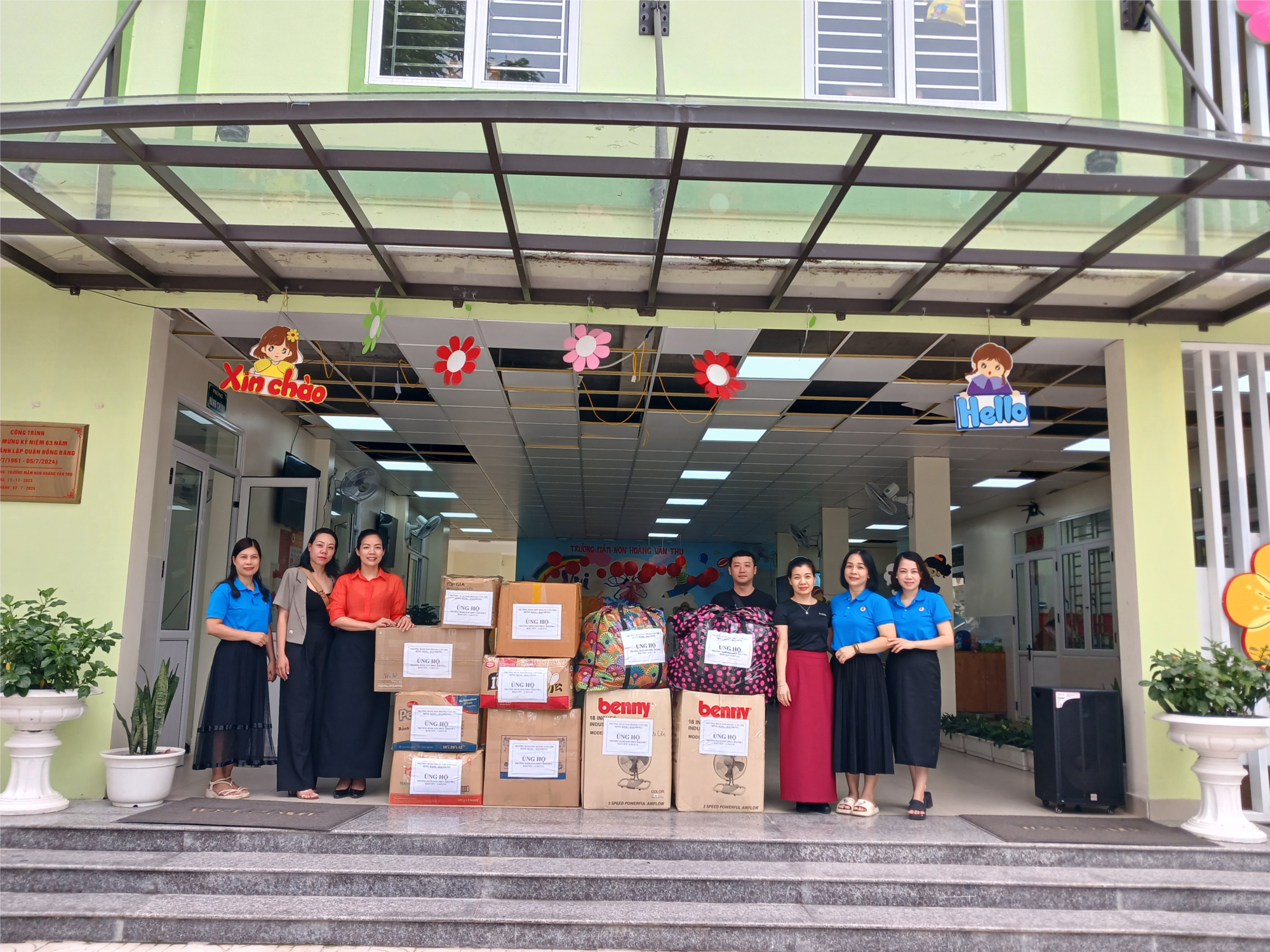học sinh bị ảnh hưởng của bão lũ; với tinh thần "lá lành đùm lá rách - lá rách ít đùm lá rách nhiều" chung tay sẻ chia với các bạn nhỏ bị ảnh hưởng do con bão số 3 Yagi, trường Mầm non Hoàng Văn Thụ đã phát động phụ huynh học sinh quyên góp, ủng hộ trong 3 ngày 16, 17, 18/9/2024 với số tiền 16.373.000đ (Mười sáu triệu ba trăm bảy ba nghìn đồng) cùng các hiện vật như quần áo, cặp sách, ba lô, vở bút, sách truyện... Toàn bộ tiền mặt và hiện vật nhà trường đã thông qua Phòng GDĐT quận Hồng Bàng gửi cho trường Mầm non Phúc Khánh 1 - Bảo Yên - Lao Cai ngay trong ngày 19/9/2024.