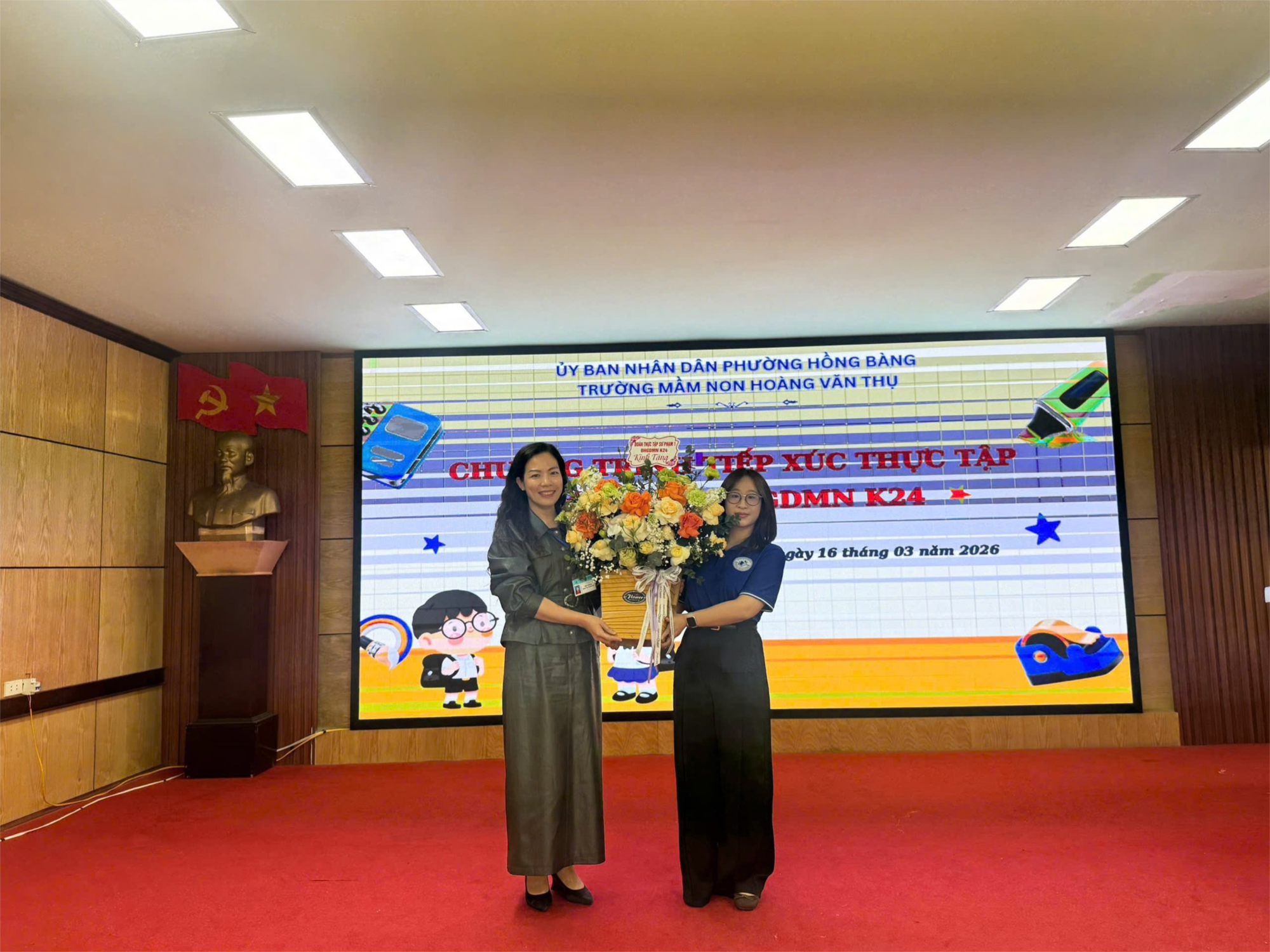 Ngày 16 tháng 3 năm 2026, trường mầm non Hoàng Văn Thụ vui mừng chào đón 26 em sinh viên lớp Đại học sư phạm khoa Tiểu học - Mầm non K24 của trường Đại học Hải Phòng về thực tập tại trường.