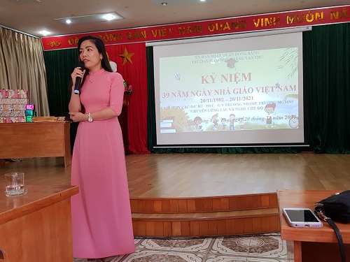 Do dịch bệnh Covid-19 phức tạp nên nhà trường phối hợp với Công đoàn trường tổ chức buổi kỷ niệm ngắn gọn, biểu dương những cán bộ giáo viên đạt các thành tích trong năm học 2020 - 2021.
