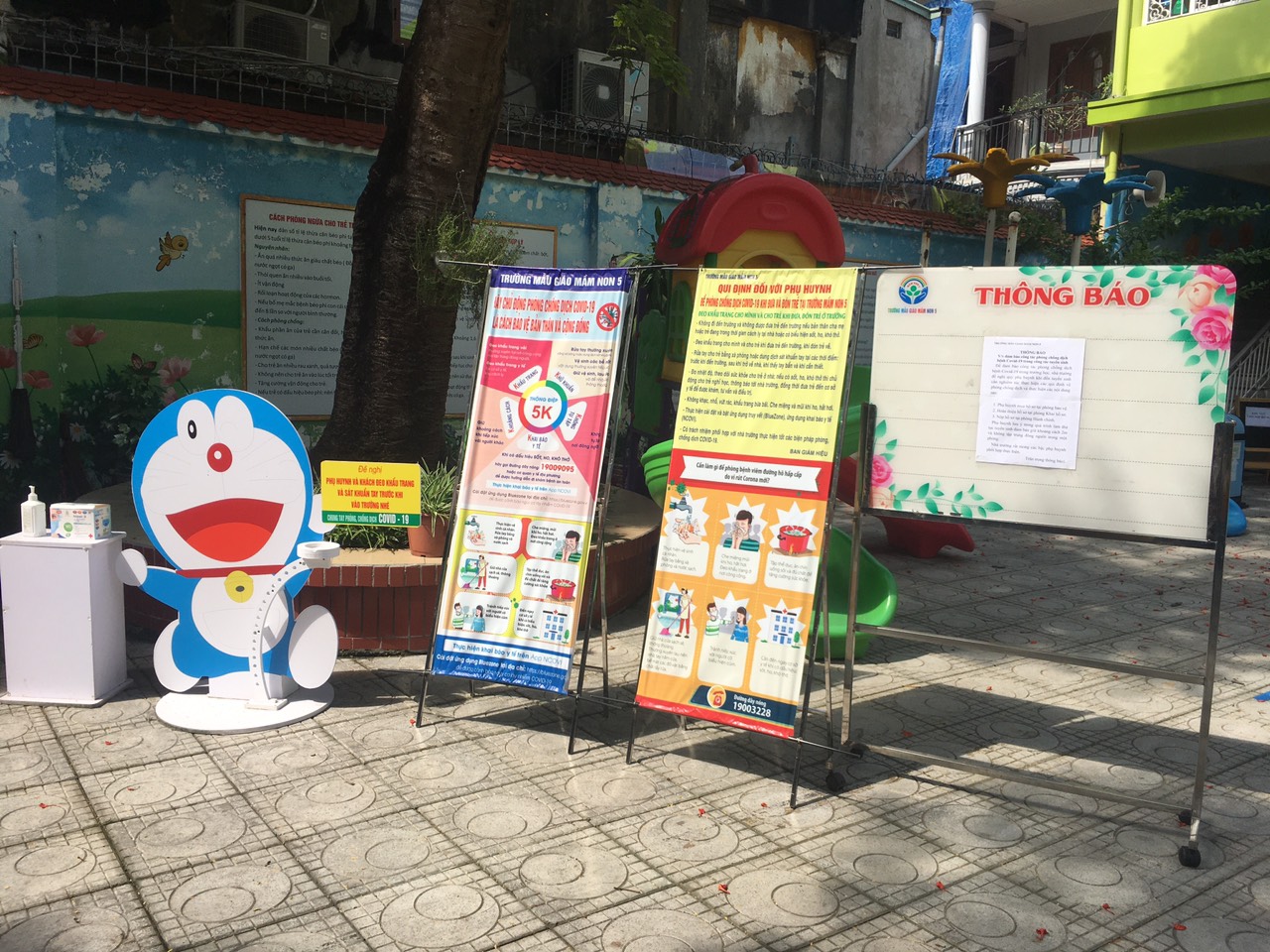 Để đảm bảo phòng dịch Covid-19 nên phụ huynh đến nộp hồ sơ trực tiếp tại trường đã được hướng dẫn đo thân nhiệt, sát khuẩn tay và khai báo y tế ngay từ cổng trường, khi vào đến phòng tiếp nhận hồ sơ luôn đảm bảo khoảng cách.