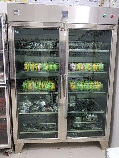Nhà bếp vệ sinh, sấy bát thìa và các đồ dùng chế biến