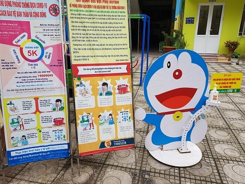 Bảng tuyên truyền Hướng dẫn phòng chống dịch và dung dịch sát khuẩn tay ngay từ ngoài cổng trường