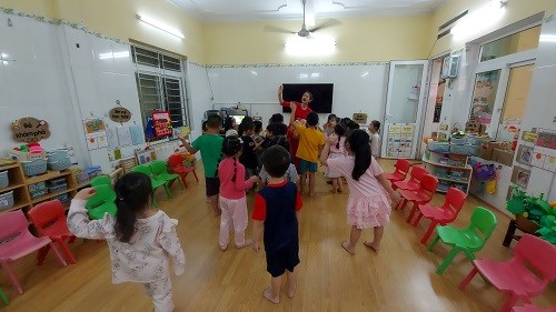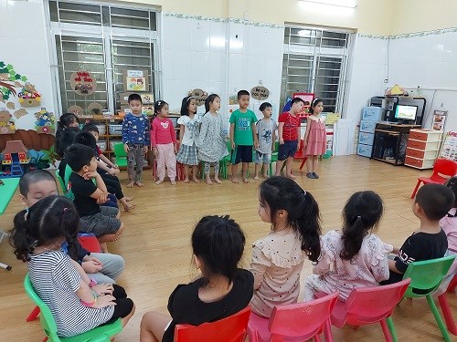 Cô giáo Nguyễn Thị Nga đã tổ chức hoạt động học âm nhạc cho các bé 5 tuổi lớp A3 với bài hát "Quê hương em biết bao tươi đẹp", một số hình ảnh của các bé trong giờ học: