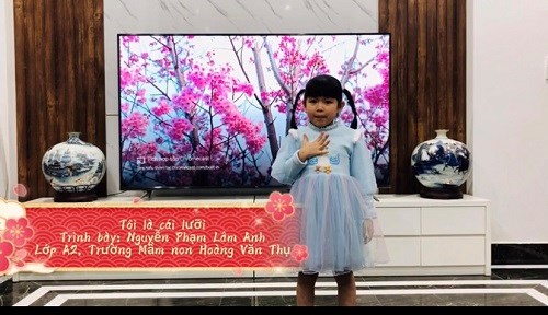 Do tình hình dịch Covid-19 diễn biến phức tạp, các bé phải nghỉ học ở nhà nên các cô giáo đã tuyên truyền, thống báo tới toàn thể phụ huynh học sinh trên nhóm zalo của lớp, động viên khuyến khích các con tham gia kể những câu chuyện, đọc những bài thơ mà được cô dạy trên lớp hay được nghe ông bà, bố mẹ kể ở nhà, nhờ bố mẹ quay lại và gửi về cho nhà trường.