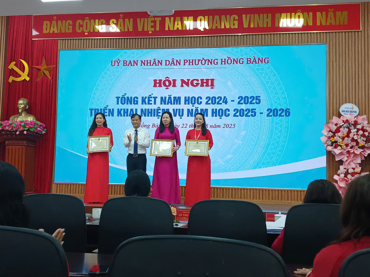 Năm học 2024 - 2025, với sự nỗ lực và phấn đấu của tập thể cán bộ, giáo viên, nhân viên trường Mầm non Hoàng Văn Thụ đã hoàn thành xuất sắc nhiệm vụ chính trị cũng như công tác chuyên môn chăm sóc, giáo dục trẻ mầm non. Thật vinh dự cho nhà trường đã được UBND thành phố Hải Phòng tặng danh hiệu Tập thể Lao động xuất sắc, Bộ Giáo dục và Đào tạo tặng Bằng khen.