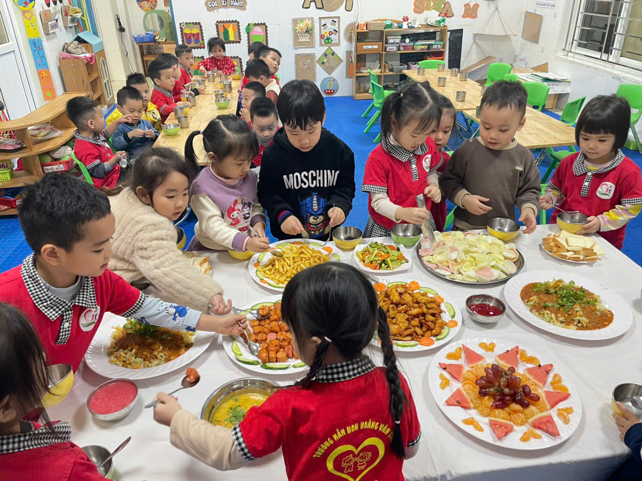 Thay đổi thực đơn cho các bé nhằm mục đích kích thích trẻ ăn ngon, có hứng thú với các món ăn là một trong những nội dung mà trường Mầm non Hoàng Văn Thụ đã đề ra từ đầu năm học, do vậy việc tổ chức cho trẻ ăn buffet cũng là hình thức thay đổi thực đơn, hình thức tổ chức bữa ăn chính cho trẻ trong nhà trường đã giúp trẻ ăn ngon miệng và ăn hết suất.