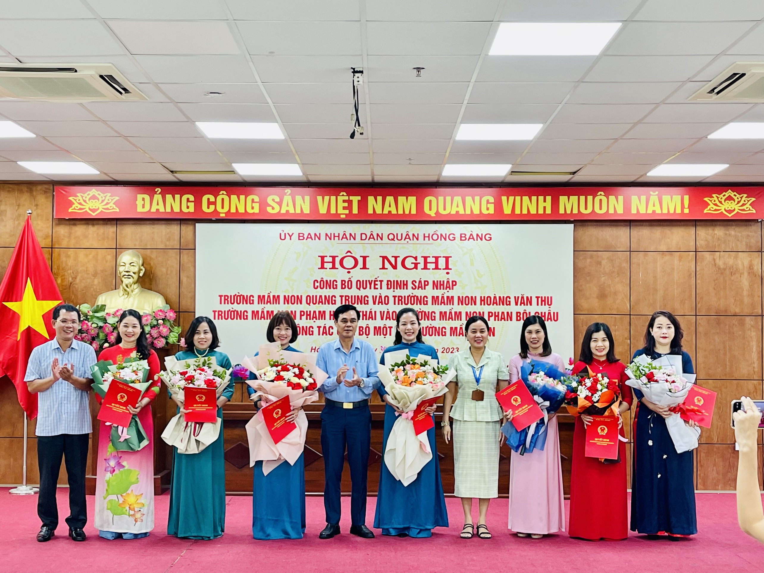 Chiều ngày 30 tháng 6 năm 2023 tại Hội nghị công bố Quyết định sáp nhập trường Mầm non Quang Trung vào trường Mầm non Hoàng Văn Thụ và công tác cán bộ một số trường mầm non do UBND quận Hồng Bàng tổ chức, tới dự Hội nghị có đ/c Phạm Văn Đoan - Phó Bí thư Quận uỷ, Chủ tịch UBND quận và các đ/c lãnh đạo HĐND, UBND quận, các phòng ban chuyên môn trong quận.