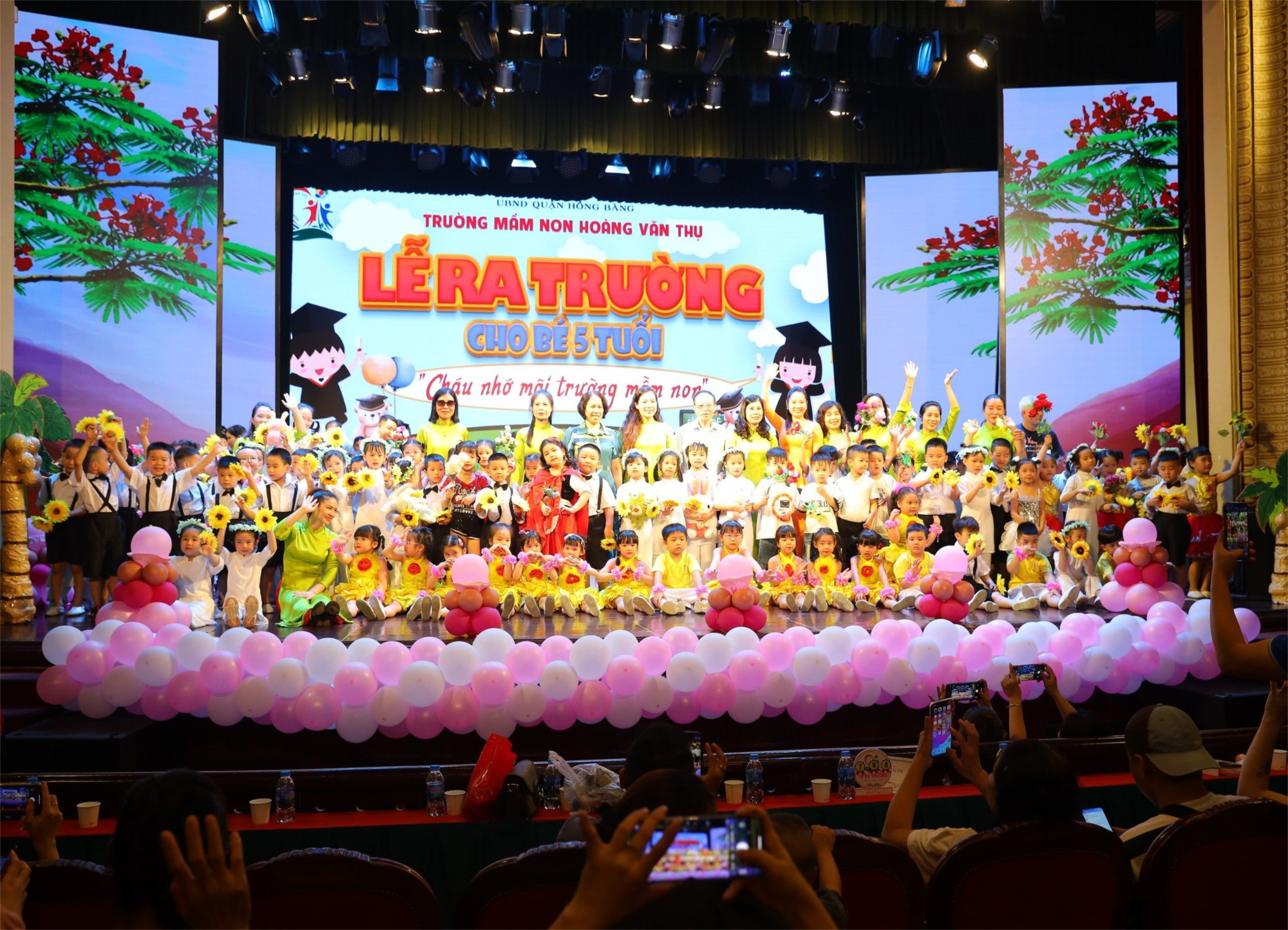 Thật trang trọng khi các bé cùng cha mẹ mình lên sân khấu nhận Giấy chứng nhận hoàn thành chương trình mầm non và kỷ niệm chương của nhà trường, xúc động khi nói lời tạm biệt mái trường mầm non thân yêu để chuẩn bị bước sang ngôi trường tiểu học. Những cái ôm hôn, nắm tay hay những lời ca tiếng hát của các bé còn in mãi trong tâm trí của các cô giáo, bạn bè dưới mái trường Mầm non Hoàng Văn Thụ thân yêu.