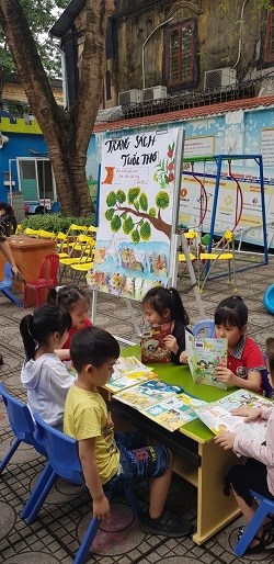 Qua Ngày hội sách nhằm giúp trẻ làm quen với các câu chuyện, bài thơ từ đó trẻ mạnh dạn, tự tin trong những đoạn kịch hay đọc thơ trước đông người.