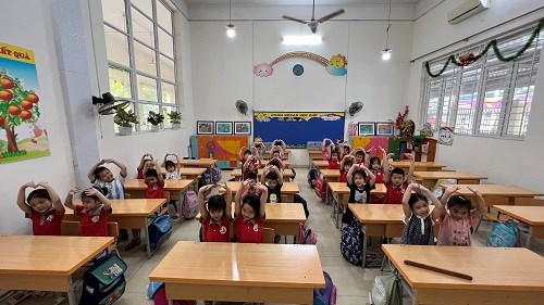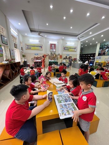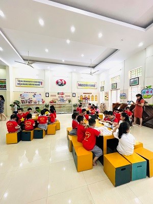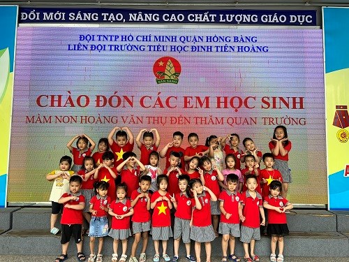Thực hiện Chương trình Chăm sóc - Giáo dục mầm non của Bộ GD&ĐT và chuẩn bị tâm thế cho các bé 5 tuổi vào lớp 1 sắp tới, trường Mầm non Hoàng Văn Thụ đã liên hệ và tổ chức cho các bé lớp 5 tuổi tham quan trường Tiểu học Đinh Tiên Hoàng, quận Hồng Bàng, Hải Phòng.