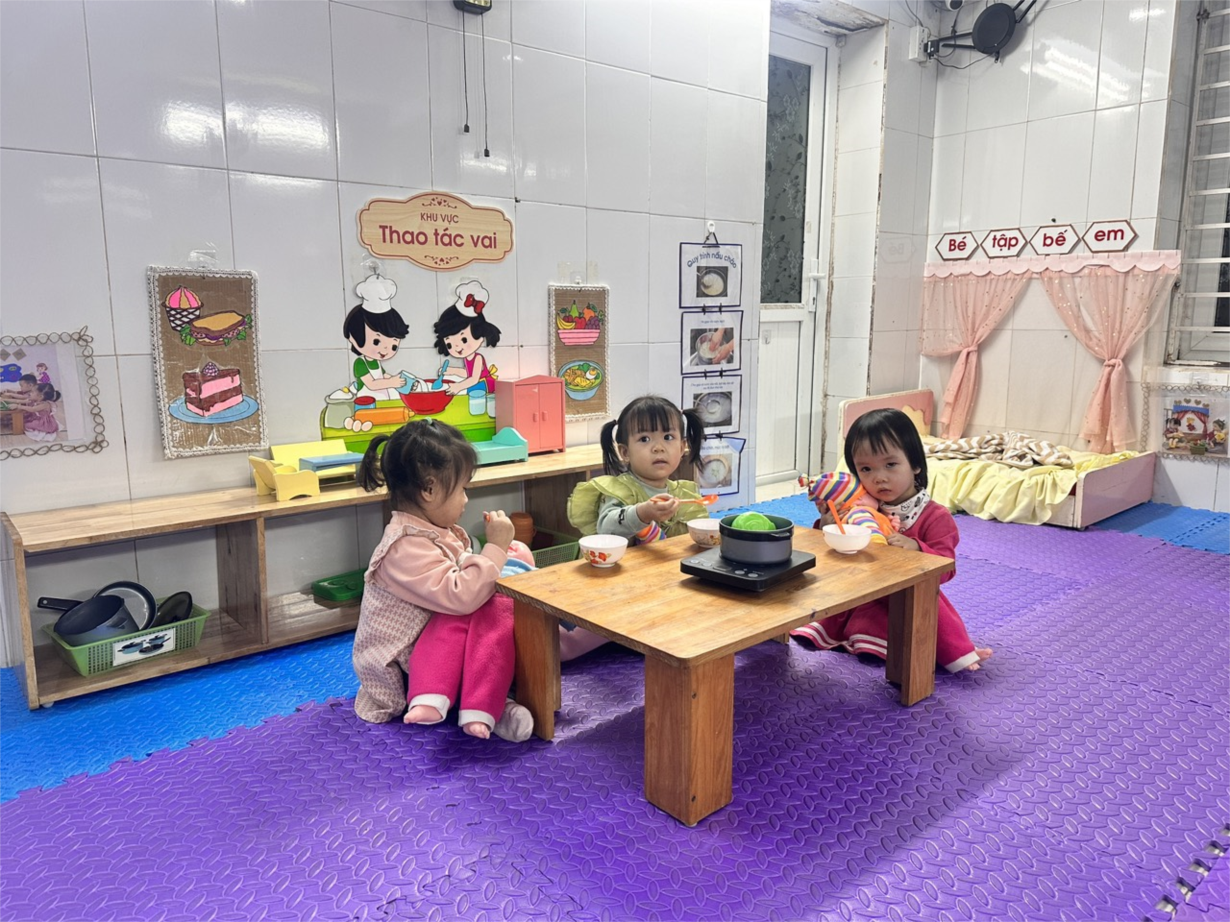 Đến lớp các bé được vui chơi, giao lưu cùng các bạn, một số hình ảnh của các bé tại lớp trong những ngày rét đậm, rét hại:
