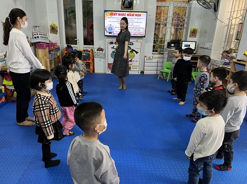 Tuần đầu chỉ có 24 - 36 trẻ tới trường, nhưng các cô giáo đã tích cực tuyên truyền với phụ huynh học sinh về công tác phòng chống dịch của nhà trường như: tổng vệ sinh khử khuẩn trong ngoài lớp học, sát khuẩn đo thân nhiệt cho trẻ trước khi vào lớp, xây dựng phương án khi có trẻ F0 trong trường... nên dần dần phụ huynh đã đưa trẻ đến lớp đông hơn, tuần thứ hai tăng lên 60-70 trẻ, tuần tiếp theo trẻ đã đến lớp gấp đôi 140-150 trẻ.